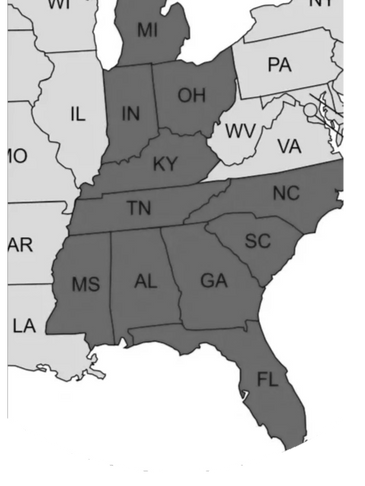 Territories include southeastern states of Alabama, Florida, Kentucky, Georgia, Mississippi, North Carolina, South Carolina, and Tennesee, as well as Indiana, Ohio and Michigan in the Midwest. For specific Principals, we cover all of North America.